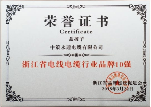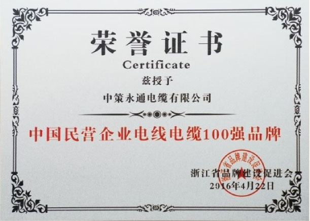 公司為浙江省電線電纜行業(yè)品牌10強,中國民營企業(yè)電線電纜100強品牌,并獲得國家專精特新小巨人企業(yè)、國家高新技術企業(yè)、省科技型中小企業(yè)、省專精特新中小企業(yè)、區(qū)政府質(zhì)量獎、浙江制造“品”字標認證等多項榮譽。中策永通電纜有限公司生產(chǎn)設備精湛,技術力量雄厚,加工工藝先進,檢測工序齊全,質(zhì)量體系完善,售后服務周到。以專業(yè)和品質(zhì)為客戶提供優(yōu)質(zhì)的產(chǎn)品與服務,不斷在產(chǎn)品多元化、效益規(guī)?;?、技術高新化、體制現(xiàn)代化中求突破,繼續(xù)擴大和保持在電線電纜領域的引領地位。